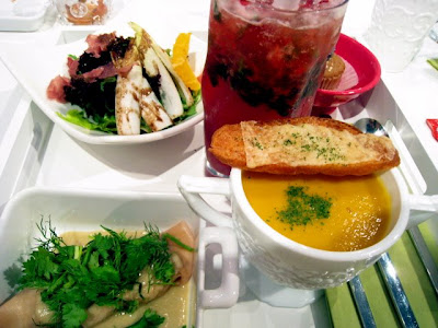 A perfect place to meet friends for afternoon tea or brunch, or maybe to host a baby shower or birthday. They have 4 set menus on their clear plastic menu, all including a cupcake and raspberry soda drink for NT$580. The menu combos looked promising, but ultimately were all much smaller in portions than I expected for the price.