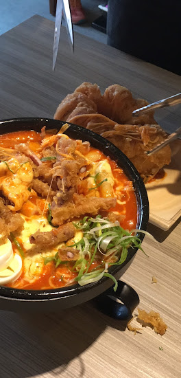 Some thoughts after three visits- skip the ramen- unless you want to try to add it into the tteokbokki. Make sure your squid is hot when it comes to your table, if that's important to you. On my third visit, I instinctively touched the squid when the dish didn't appear to be hot and I was right when it wasn't. So we sent it back a new one because what's the point of wasting calories when it's not hot out of the fryer. I also missed the cute, helpful waiter from our first visit-- this time the servers were all clumped together at the bar, not looking toward the customers and we often had to walk over and wave them down. Also different servers will create different experiences, and since this dish is a bit interactive, then it's even more important that the servers provide a good experience for repeat business.